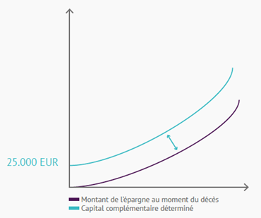 When you subscribe to your contract, you stipulate that in the event of your death your next of kin must receive 25,000 euros in addition to the amount you have already saved. This is the established additional capital.