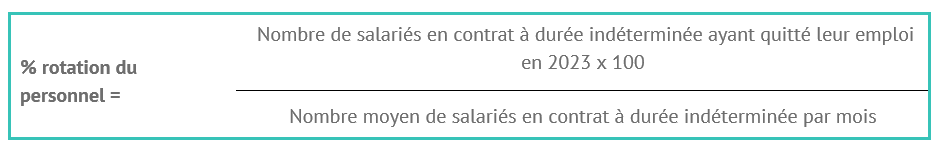 La rotation globale du personnel pour les contrats de travail à durée indéterminée est égale à la somme des trois motifs : rotation volontaire, rotation involontaire et départ du marché du travail.