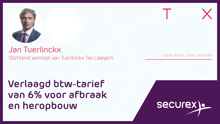 Het verlaagde tarief van 6% geldt voor de verschuldigde btw tussen 1 januari 2021 en 31 december 2022 op werken die uitgevoerd worden in het kader van afbraak en heropbouw op hetzelfde perceel van een gebouw dat de bouwheer gebruikt als eigen en enige woning. Het is dus een tijdelijke maatregel.