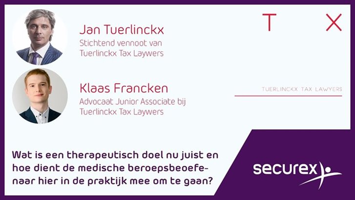 Wat verstaan we nu precies onder therapeutisch doel? De wetgever heeft dit niet gedefinieerd maar baseert zich op de Europese rechtspraak. En die omschrijft een therapeutische handeling als een handeling die de diagnose, verzorging en genezing van ziekten of gezondheidsproblemen tot doel heeft of de preventie, bescherming met inbegrip van behoud of herstel van de gezondheid van de mens. In de praktijk komt het erop neer dat de medische beroepsbeoefenaar zelf in eer en geweten het therapeutisch doel bepaalt.