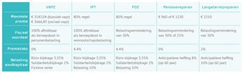 Naast bovenstaande pensioenplannen kunnen zelfstandigen ook gebruik maken van ‘klassieke’ opties: het pensioensparen en langetermijnsparen. Beide kunnen een belastingvermindering van 30% opleveren en zijn onderworpen aan een anticipatieve heffing van 8% op 60 jaar. (De heffing voor Langetermijnsparen is 10%) Het pensioensparen is volledig vrijgesteld van premietaksen, 2% is de volledige premietaks, dus ik zou niet spreken van beperkt. Gewoon weglaten lijkt mij het beste.