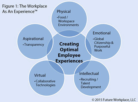 Aribnb, de website voor kamerverhuur, noemt zijn “employee experience”-model “Workplace as an experience” (werkplek als een ervaring). De kern van dit concept is de nadruk leggen op de fundamentele componenten van werk: fysiek, emotioneel, intellectueel, virtueel en ambitiegericht. De ervaring van Airbnb is intrigerend. Naast typische HR-activiteiten zoals aanwerven, promoveren of overplaatsen is de Chief Employee Experience Officer van Airbnb ook verantwoordelijk voor een reeks van nieuwe domeinen die uiteindelijk de “Workplace as an Experience” (werkplek als een ervaring) vormen. Deze uitgebreide functie omvat onder andere fijnproeverseten, wereldburgerschap, werkvloercontrole en faciliteiten.