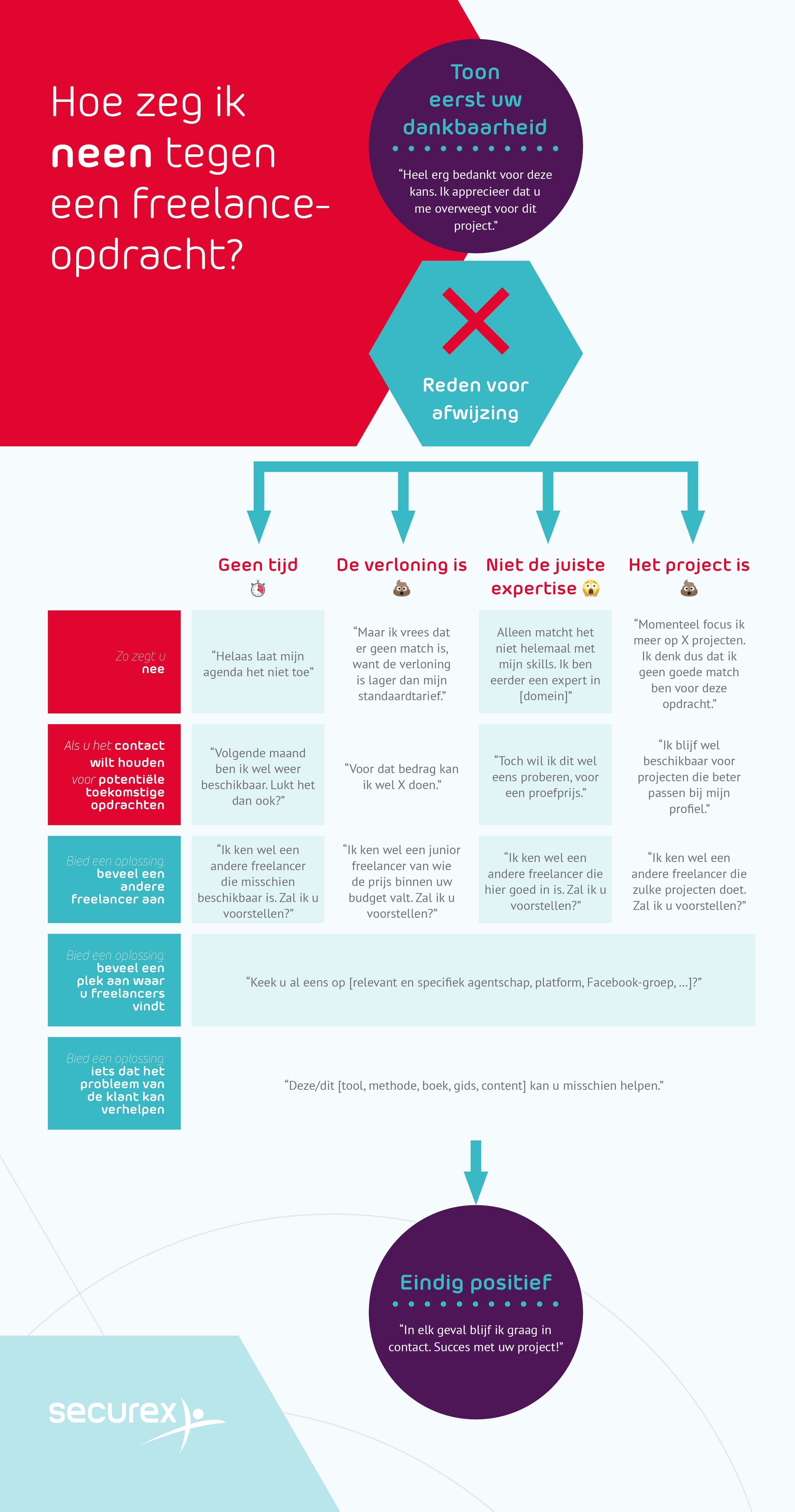 Deze template bevat zinnen die u kunt gebruiken om een project op een beleefde manier te weigeren. Bijvoorbeeld omdat u geen tijd hebt of gewoon geen klik voelt.