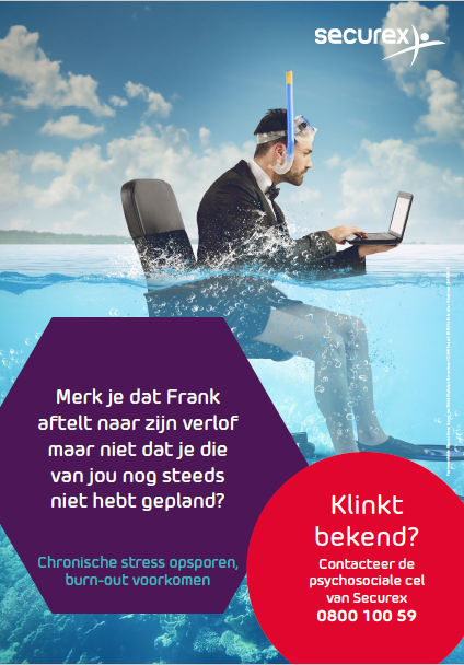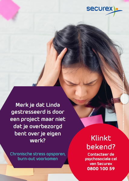 Word partnerPsychosociale risico's zijn een echte uitdaging voor onze maatschappij... en dus ook voor uw organisatie. Steeds meer werknemers hebben last van stress of zelfs van een burn-out. Wil je je werknemers bewust maken van de tekenen van stress? Wij kunnen je voorzien van een reeks informatieve en preventieve posters.