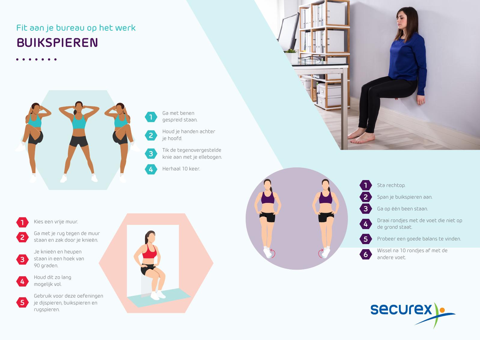 - Mini- workouts die je op kantoor kunt doen, al zittend, staand, wachtend op de printer of aan de koffiemachine